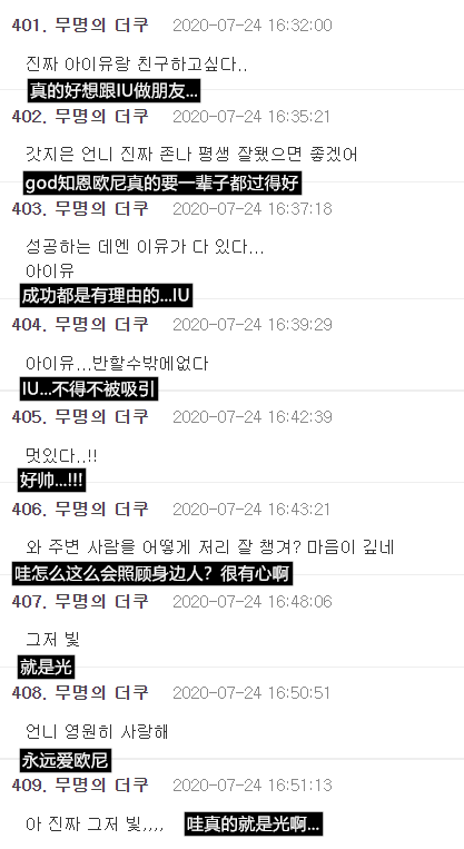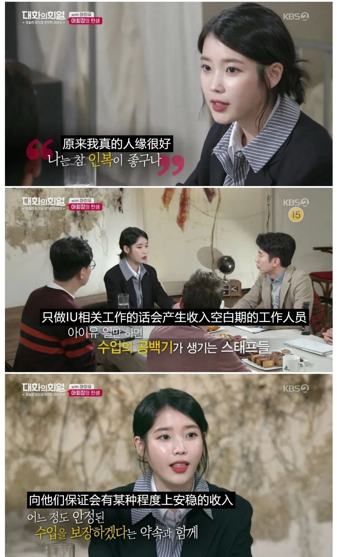 众所周知,IU曾以工作人员的雇佣保障,工资上调等要求作为和现经纪公司的续约条件。IU对此表示:“小时候我就觉得自己人缘很好,原本很早就认识的人也不会因为我成功了就对我改变看法。曾经发生过工作人员不能只留在公司为我做事所以要离开的情况,所以我拜托了他们请和我一起继续走下去并且承诺了收入保障”。