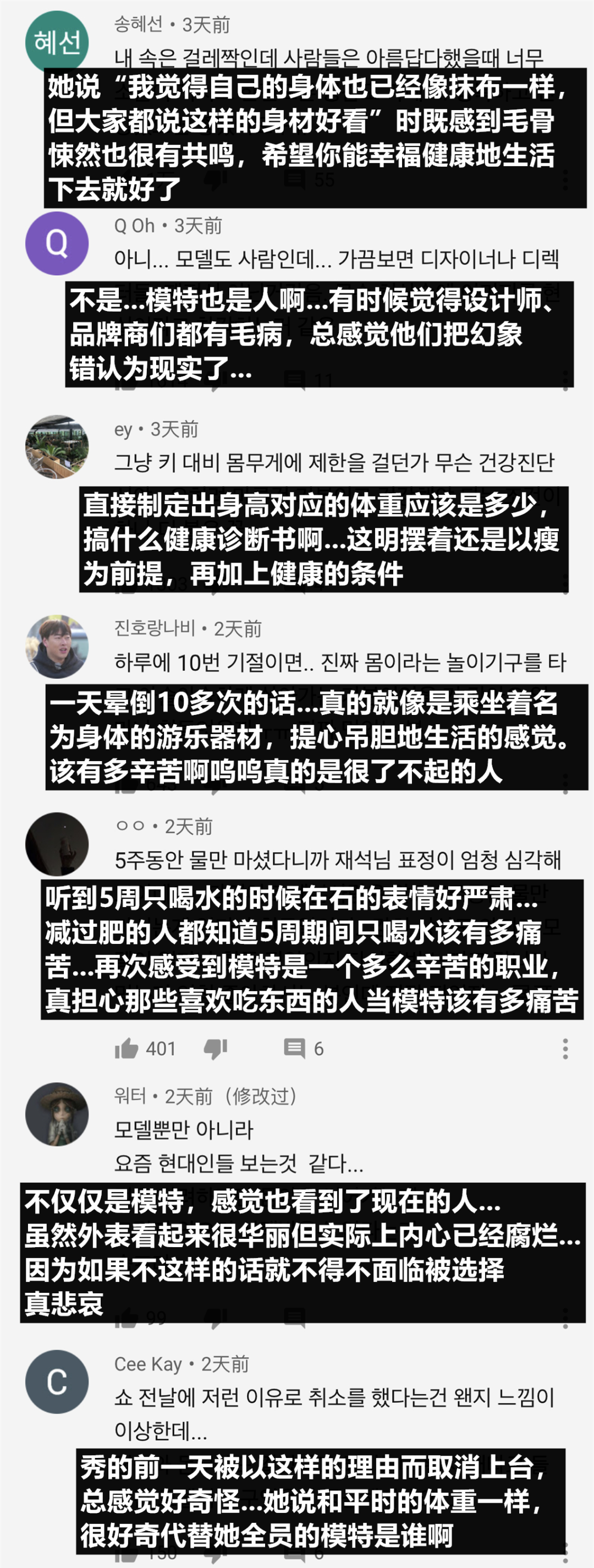 提到韩国的超模,相信大家一定知道崔素拉!根据她在NAVER上个人简介显示,崔素拉出生于1992年,身高179cm,所属公司是YG KPLUS。 她曾成为2019年世界上登上秀场最多的模特,目前是韩国极具人气的超模之一,受到各大品牌设计师的青睐。 左右滑动可查看更多近日韩国超模崔素拉出演了综艺节目《You Quiz On The Block》,该节目由刘在石、曹世镐主持,节目主题是刘在石和曹世镐探访人们的日常生活,进行简单谈话和突然问答等。12月2日崔素拉出演的《You Quiz On The Block》第83期World Class特辑节目播出后,相关内容便引起了众人的关注。那么今天我们一起来了解一下崔素拉在节目中都透露了哪些内容吧!虽然作为模特的崔素拉看似冷酷气场强大,但其实生活中的她也是一个既会害羞也会感到紧张的人。节目开始时崔素拉进行自我介绍就紧张到忘词,她还表示出演综艺节目比上T台走秀还紧张。而且此次也是她继2012年出演韩国选秀节目《挑战!Super Model Korea》获得冠军后,时隔8年首次出演综艺节目。随后当刘在石问道她曾参与走秀的代表性品牌,崔素拉表示:LV、Prada、Chanel、Miu Miu等。同时崔素拉还提到了登上四大时装周对模特们的意义:对于模特们来说那当然是梦想般的舞台,我在海外出道后第一次去面试时装周的时候,看到从很多个国家来了数千名模特,试镜的时候也要等很久,因为模特太多了。而且每个品牌都需要自己去试镜,一天大约要去参加16个试镜。而对于现在的崔素拉来说,她已经不需要再参加试镜,而是收到邀请后自行决定是否参与走秀。之后刘在石提到了崔素拉作为模特的运动、身材管理问题,对此崔素拉谈到了自己极端减肥的亲身经历:事实上我一开始并没有这么瘦,但那时在海外活动的期间我经历过一次挫败。我出道后一直是LV的独家模特,但某一次LV秀的前一天我被突然取消了上台资格。原因是品牌方说我看起来有点肿,可是称了体重后发现明明没有任何变化,但是仍然被取消了上台资格。而且四大时装周的顺序是纽约伦敦米兰巴黎,LV秀又是在巴黎时装周的最后一天,所以我被LV秀取消资格之后相当于这整季一场秀都没走,所有的努力都白费了。出于对自己的懊恼,我开始疯狂鞭策自己减肥。当时从52kg左右减到了45-46kg,连续5周只喝水。而这样极端减肥之后也出现了严重的后遗症。我很热爱自己的工作,但是品牌们需要的只是干瘦的身材,我觉得自己的身体已经像抹布一样,但大家都说这样的身材好看。当时心里非常地迷茫,所以停止了所有的工作。我一天至少晕倒十几次,身体敏感到如果谁碰到我的手,就好像在用砂纸擦我的身体那种程度,身上每块骨头都很痛。我当时太年轻了所以才会那样减肥,现在绝对不会这样减肥。后来我彻底改变了饮食习惯,大约花了两年的时间才把身体调养好。之后我对时装界也产生了怀疑感,虽然我很热爱时尚,但我也需要一个健康的身体,只有这样我才能更长久地做自己喜欢的事情。当曹世镐提到模特干瘦身材的普遍问题时,崔素拉表示现在出台了法律,得到了很大的改善。例如法国出台了《干瘦模特退出法》规定:模特每两年就要提交健康诊断书,营养状态不佳的话就不能展开活动。去年8月份崔素拉通过INS宣布自己与相恋多年的摄影师男友结婚,并在巴厘岛举行了私密婚礼。本次在节目中崔素拉还提到婚礼时穿的黑色连衣裙是Prada赠送的,随后她讲述了当时的经历:结婚当时拍了LV、burberry、Prada的宣传照,一开始去拍LV宣传照时我说自己要结婚了,然后他们对我说“祝贺你,那婚纱要用哪里的呢”。拍burberry宣传照时我说要结婚了他们也问我用哪里的婚纱,之后在拍摄Prada宣传照时看到了一件非常满意的连衣裙,我就自言自语说好好看用来当婚纱也不错。当时设计师听到我说的话后就表示“是吗,那我们给你置办一套吧”,所以就这样了。最后崔素拉还讲述了时尚界的称赞都有很微妙的差异:例如you look great其实就是你看起来状态还不错,过得还不错的意思...如果是真的夸好看就会说OMG so gorgeous so beautiful。而当你看起来有点胖的时候就会说you look great,你看起来过得不错啊!就是这种微妙的差异。不少网友在看了崔素拉在《You Quiz On The Block》节目中透露的内容后,都对她减肥的经历感到非常惊讶。