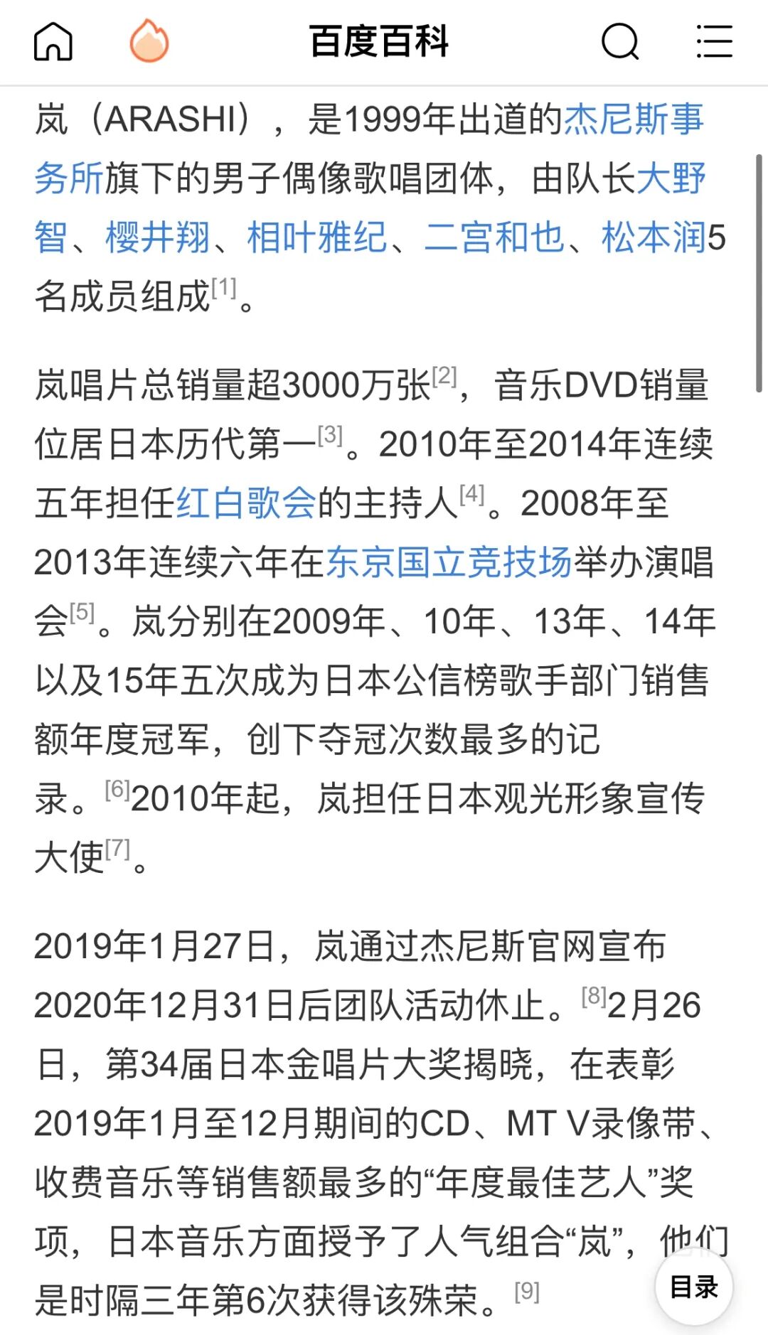 岚是1999年出道的杰尼斯事务所旗下的男子偶像歌唱团体,由队长大野智、樱井翔、相叶雅纪、二宫和也、松本润5名成员组成。他们曾多年成为日本公信榜歌手部门销售额年度冠军,创下夺冠次数最多的记录;同时也多次获得过日本金唱片大奖年度最佳艺人奖。