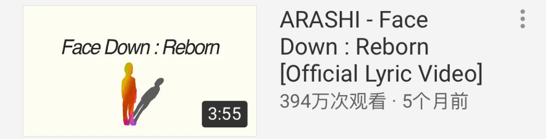 而岚《Face Down:Reborn》的歌词版MV于今年6月发布,截至目前的累计点击量为394万次。
