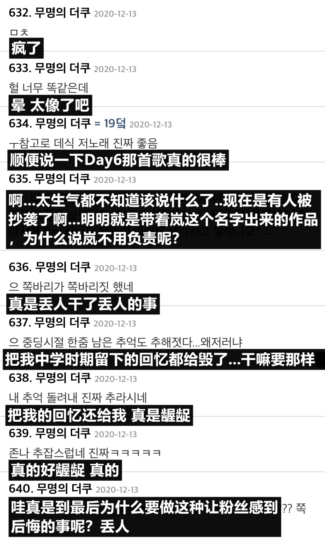 因为岚的歌词版MV发布日期比Day6晚一个月,再加上画面非常相似,所以不少网友们也认为岚的歌词版MV有抄袭Day6的嫌疑,对此曾是岚粉丝的网友也感到非常失望。