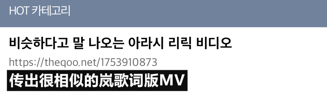 随后还有网友在the qoo发表了题为《传出很相似的岚歌词版MV》的帖子。