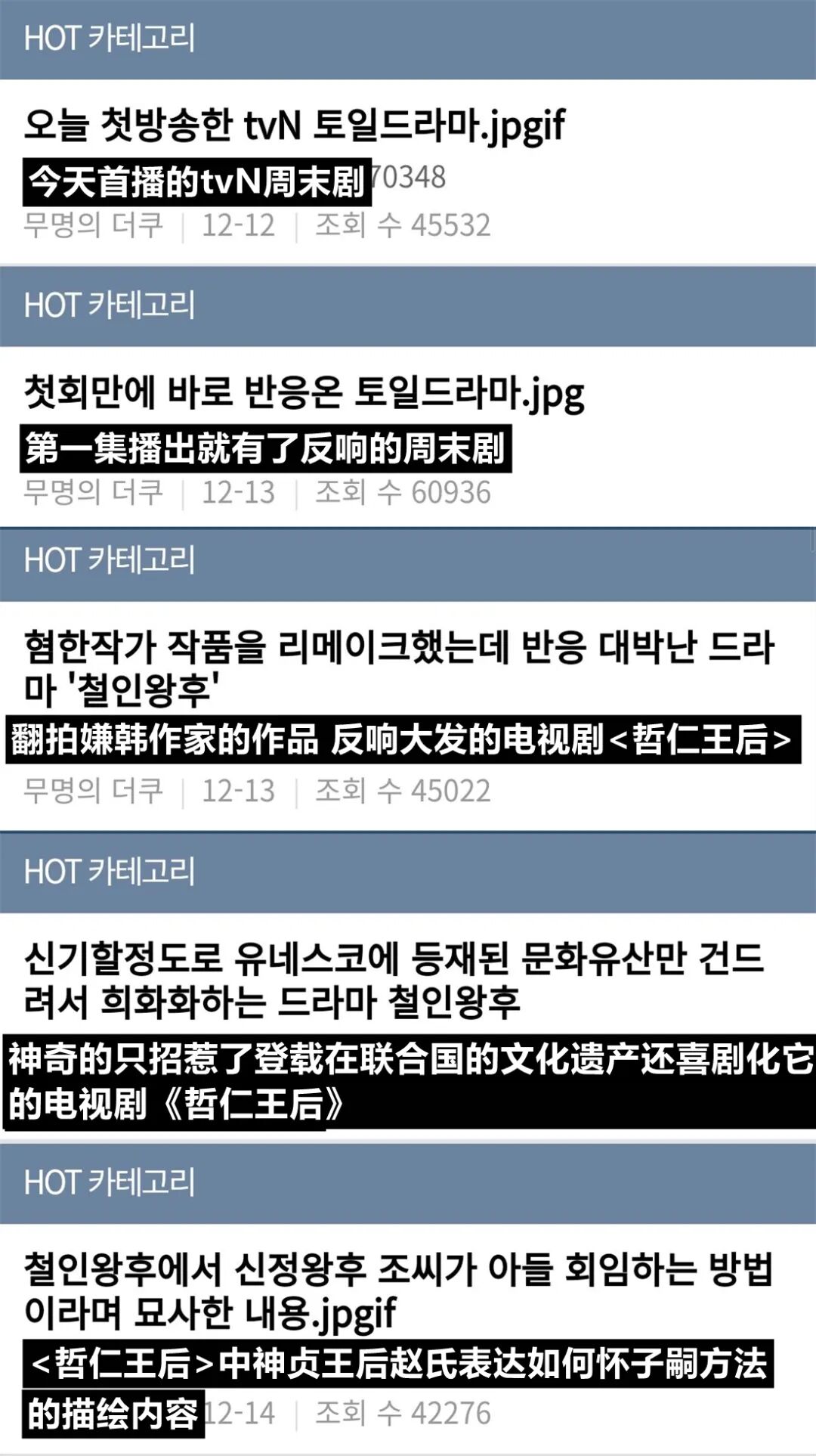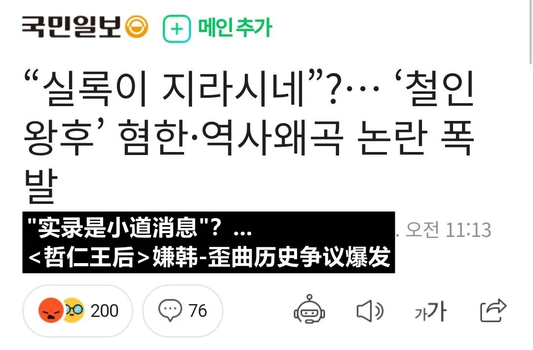 早前tvN将翻拍《太子妃升职记》的相关新闻报道发出后引发网友关注,陷入了“嫌韩”的争议。前几日《哲仁王后》播出后电视剧又因为台词、人物虚构等问题多次登上the qoo热帖。下面就《哲仁王后》目前在韩网引起的争议进行了简单的整理,一起来了解一下。