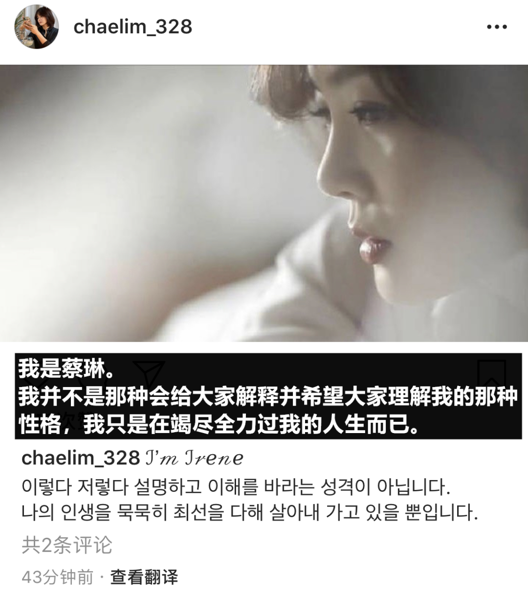 同时蔡琳本人还通过INS发文表示:“我是蔡琳。我并不是那种会给大家解释并希望大家理解我的那种性格,我只是在竭尽全力过我的人生而已”,疑似在对此次的离婚消息作出回应。