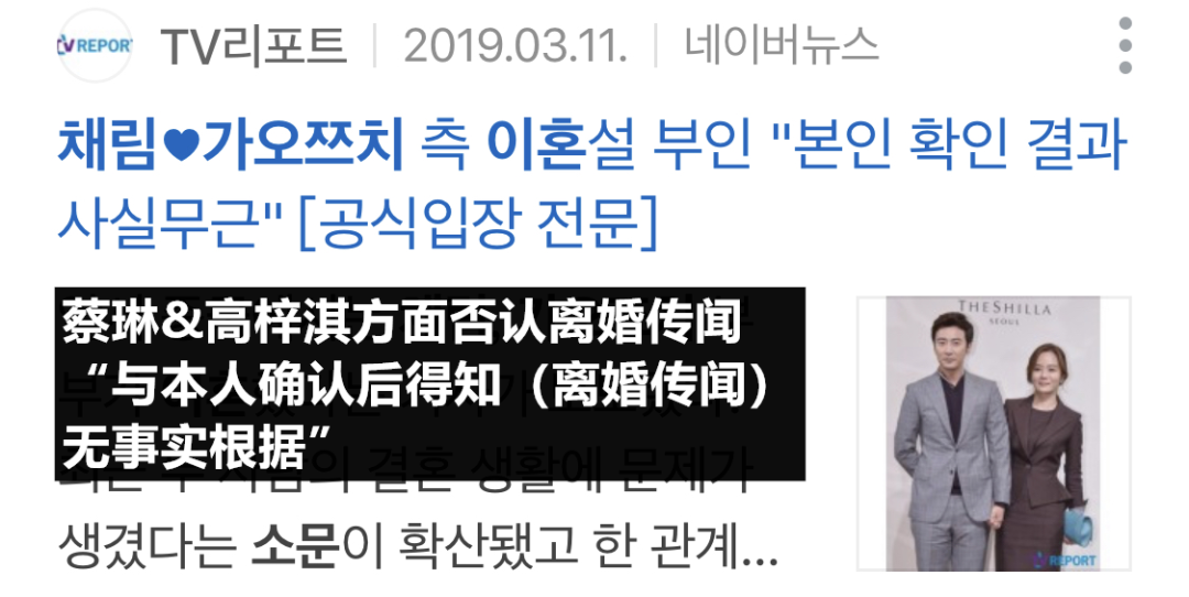 此前2019年3月蔡琳和高梓淇曾传出婚变的消息,但当时蔡琳的经纪公司发文否认了离婚传闻。因此时隔一年多两人正式离婚的消息公开后,网友们都对此感到非常震惊。