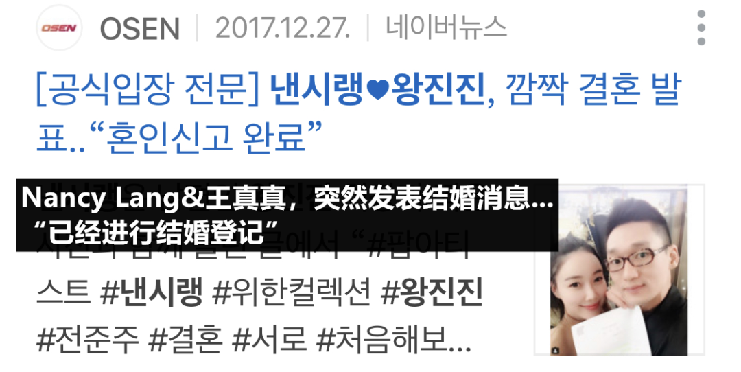 16日晚播出的MBC《Radio star》节目中,韩国流行艺术家兼西洋画家Nancy Lang自称2017年与前夫结婚,而在结婚第二天媒体就曝光了许多关于前夫的犯罪经历,最终Nancy Lang在结婚10个月后决定离婚,开始了长达三年的离婚诉讼,并于今年9月成功离婚。那么Nancy Lang到底是如何被欺骗的呢?今天我们一起来了解一下具体情况。