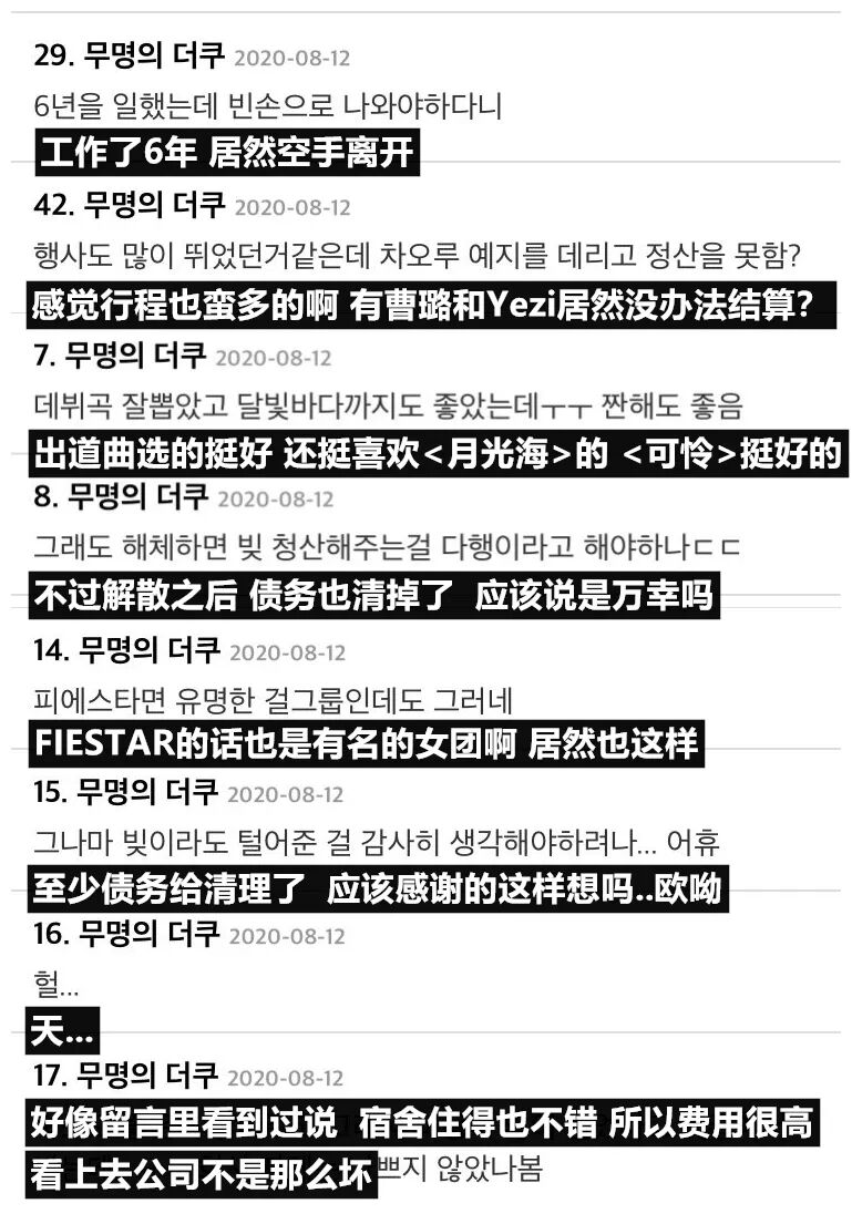 据Yezi本人表示,虽然活动当时她们背上了大笔债务,但这笔债务在组合解散后就消失了。也就是说公司并没有再强制要求成员们去还债。
