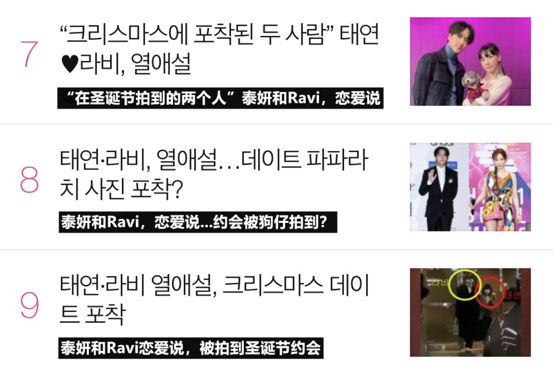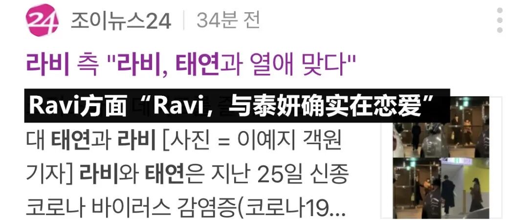 同时韩媒joynews24还表示泰妍和Ravi此前共同参演节目时也是在享受“公众关注下的秘密约会”: