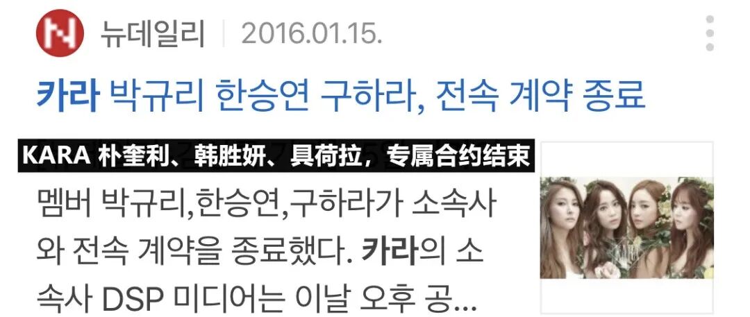 直到2016年1月15日,KARA成员的专属合约到期后不再续约,经纪公司宣布组合解散,之后成员各自发展演艺事业。