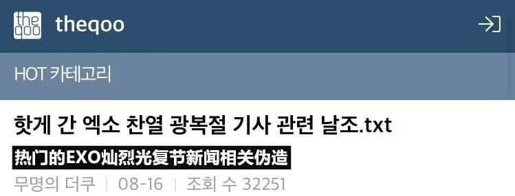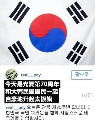 事实上灿烈本人一直十分爱国,光复节70周年时他也发过INS纪念节日。