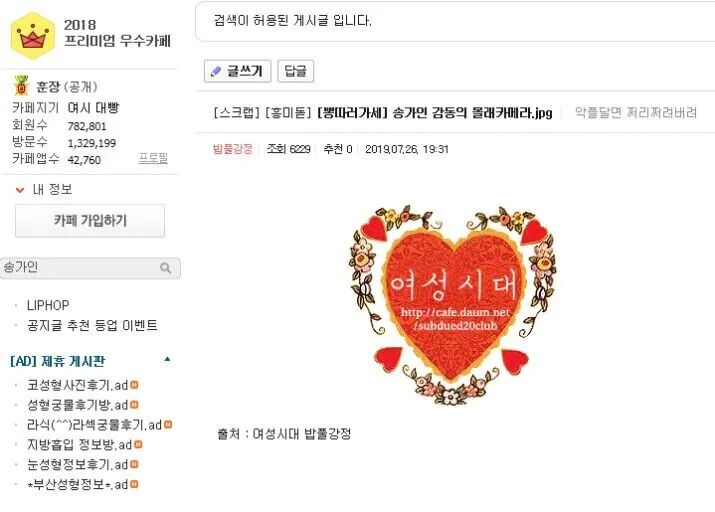 而昨日演员高庚杓合照被误认为出入娱乐场所事件中,女性时代网站的网友也成为了推波助澜的主力军,当时网友们极力表示应该起诉他们。