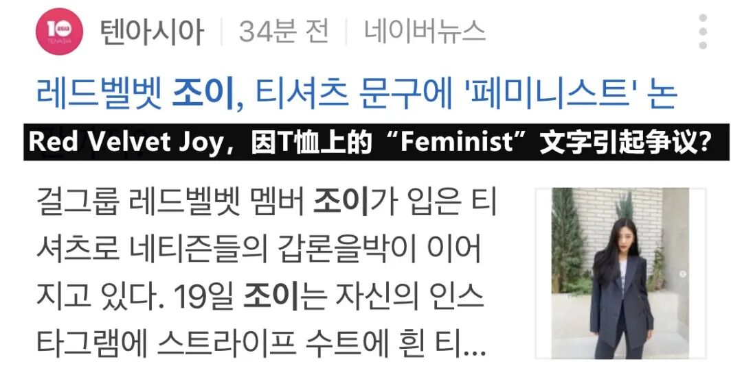 在韩国,女权主义一直是比较容易产生争议性的话题,因此如果有艺人分享或使用了与女权主义相关的物品,就会被大众定义为女权主义者。