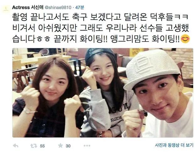 不过新闻爆出后,和他们一起出演电视剧的演员徐信爱立刻对此进行了解释。据悉当时足球场不仅有BARO和金裕贞还有徐信爱以及剧组的一些熟人。