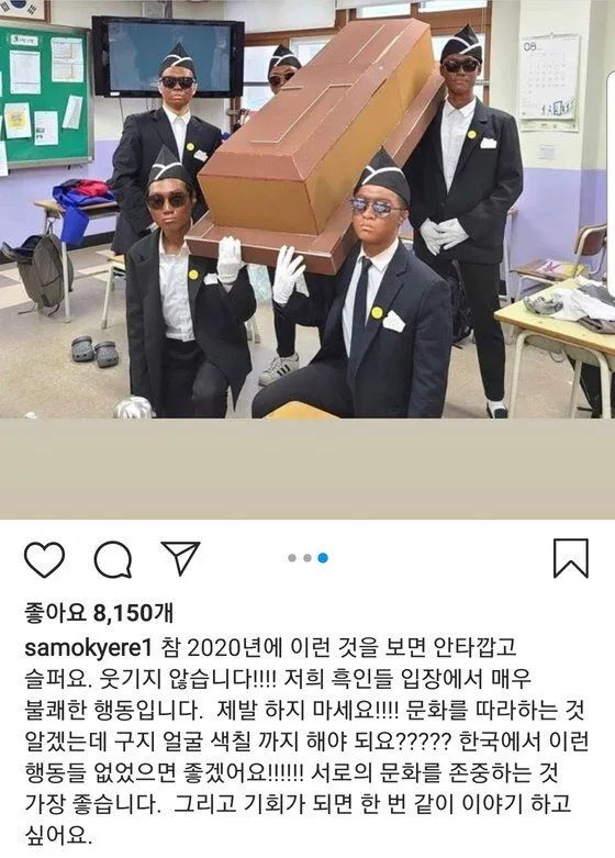 此次INS内容引起性骚扰争议后,Okyere于25日直接注销了INS账号。由于他本人未作出任何回应,目前韩网网友纷纷表示希望他从正在出演的《大韩外国人》节目下车。《大韩外国人》节目组对此表示:“我们正在确认相关争议”。