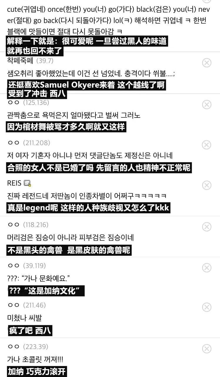 同时部分网友还表示Okyere早前在综艺节目中也有过性骚扰的行为。据悉,当时Okyere和演员崔汝珍一起录制了《Radio Star》。入座时Okyere夸赞崔汝珍“真的非常漂亮”,因为眼神太过大胆,圭贤提醒其“不要这么上上下下的看吧”,Okyere则回应称“在加纳时大家见面都是先看身材”,但崔汝珍当时则略感尴尬地表示“也太盯着看了”。