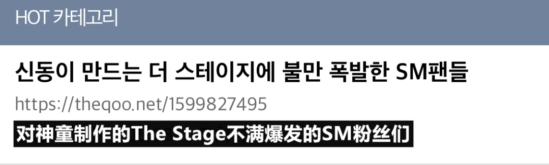 9月4日,某网友在韩网the qoo上传了一篇题为《对神童制作的The Stage不满爆发的SM粉丝们》的帖子,引起了网友们的热议。