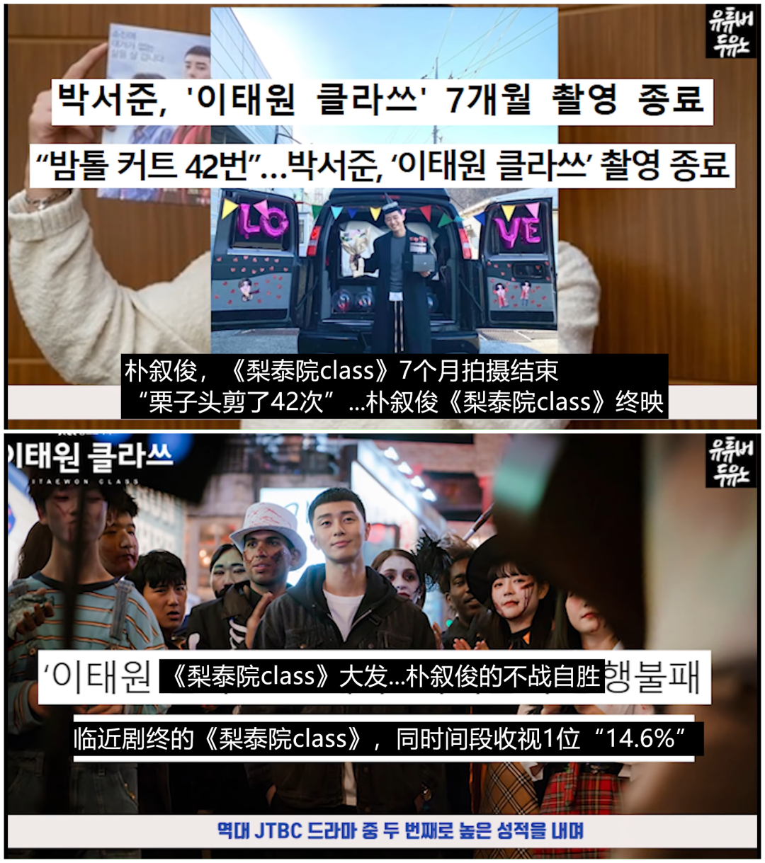 今年年初他主演的《梨泰院class》也是创下了JTBC历代电视剧中收视率第二的好成绩。