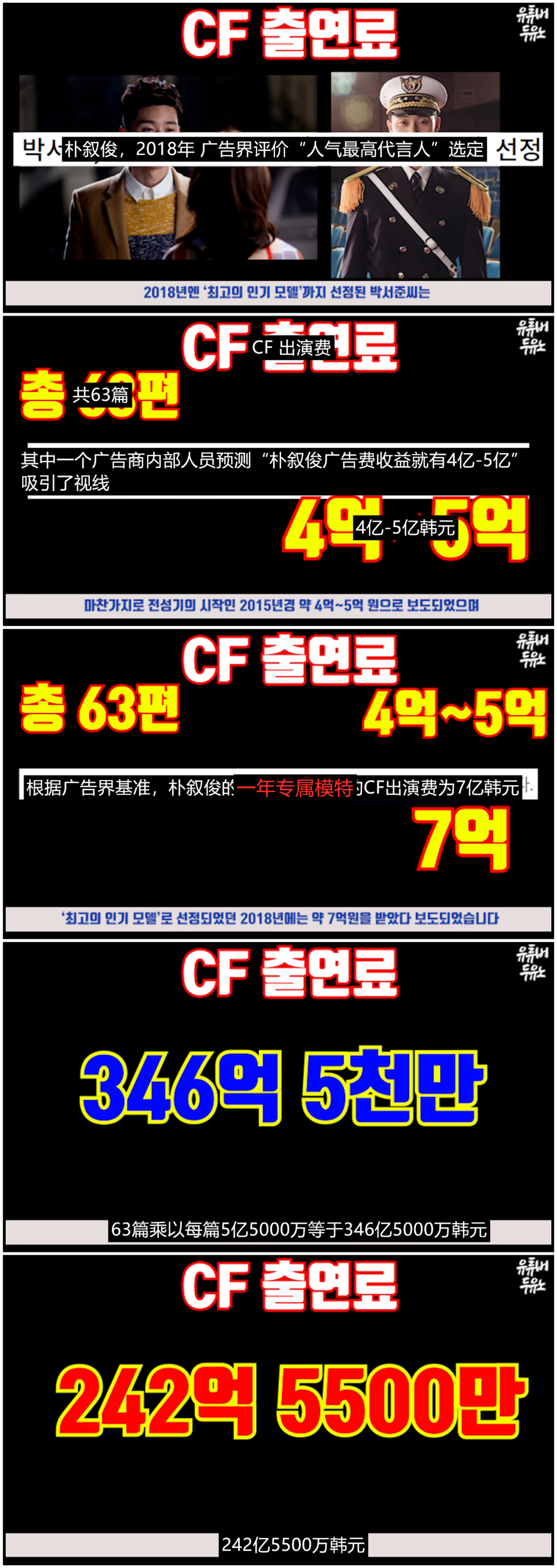 也就是说,朴叙俊仅仅是电视剧和广告出演费就多达265亿韩元。