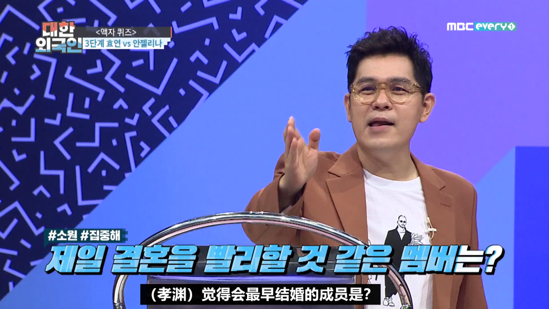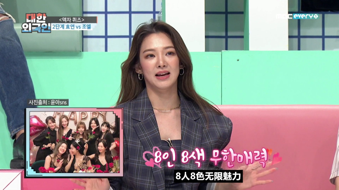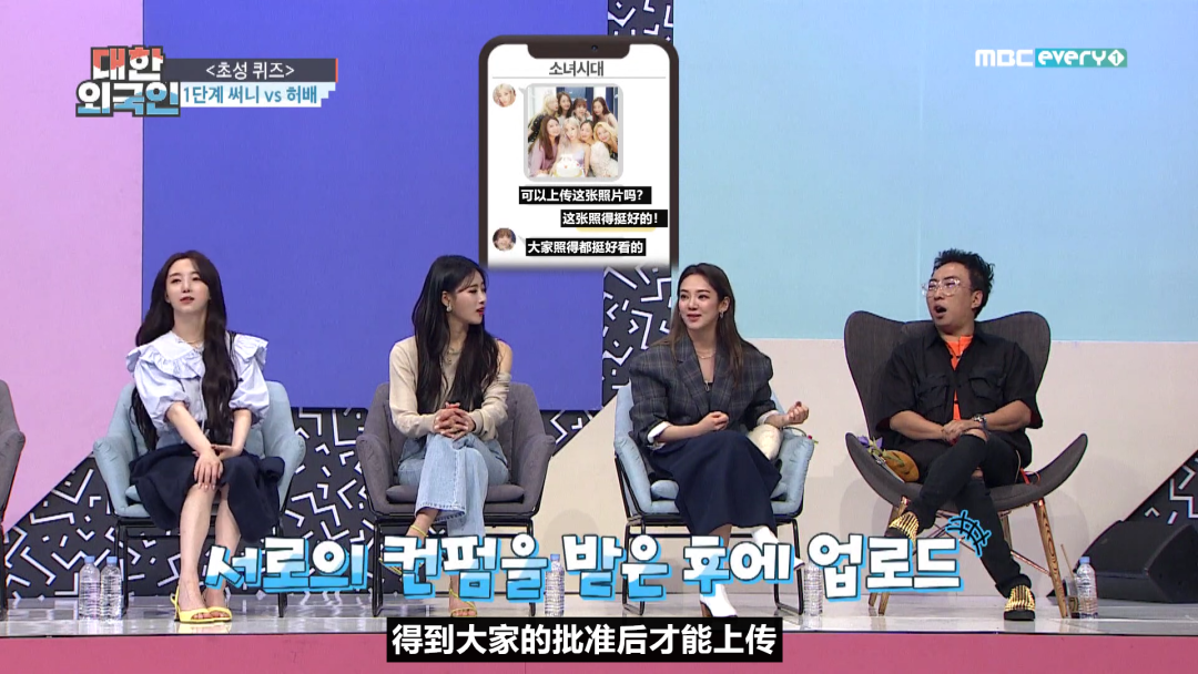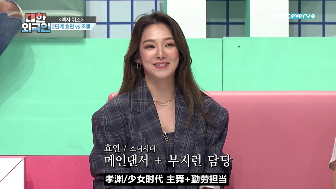 《大韩外国人》是由10名外国出演者和5名韩国出演者一起展开一场对韩国文化的智力竞赛的节目。最近少女时代成员孝渊和Sunny一起出演了这档综艺节目。