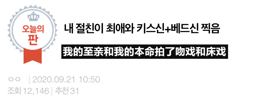 最近某网友在nate pann发表了一篇题为《我的至亲和我的本命拍了吻戏和床戏》的帖子。