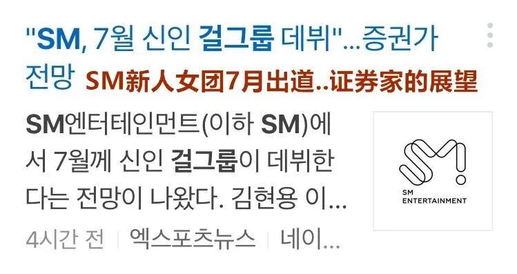 今年6月韩媒曾报道SM公司将于7月推出新女团,该新闻被报道时就引发了网友热议。虽然到目前为止SM还未推出新女团,但新女团热门人选以及SM现有练习生已经备受网友关注。