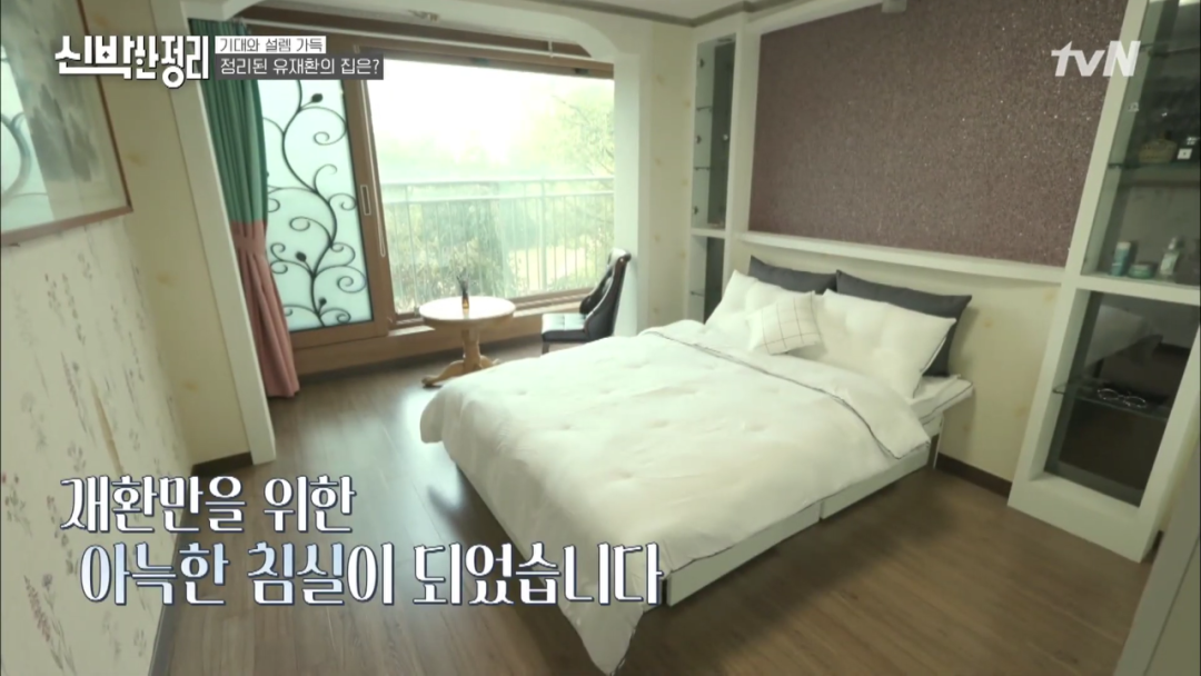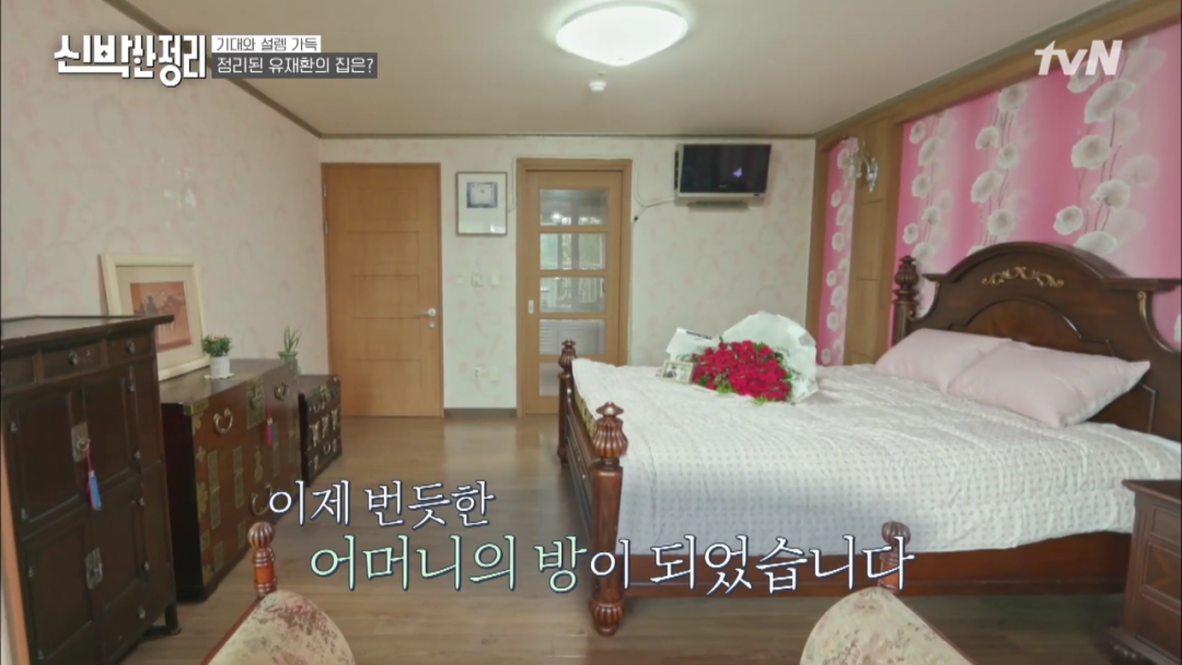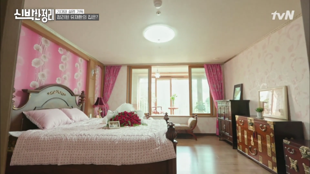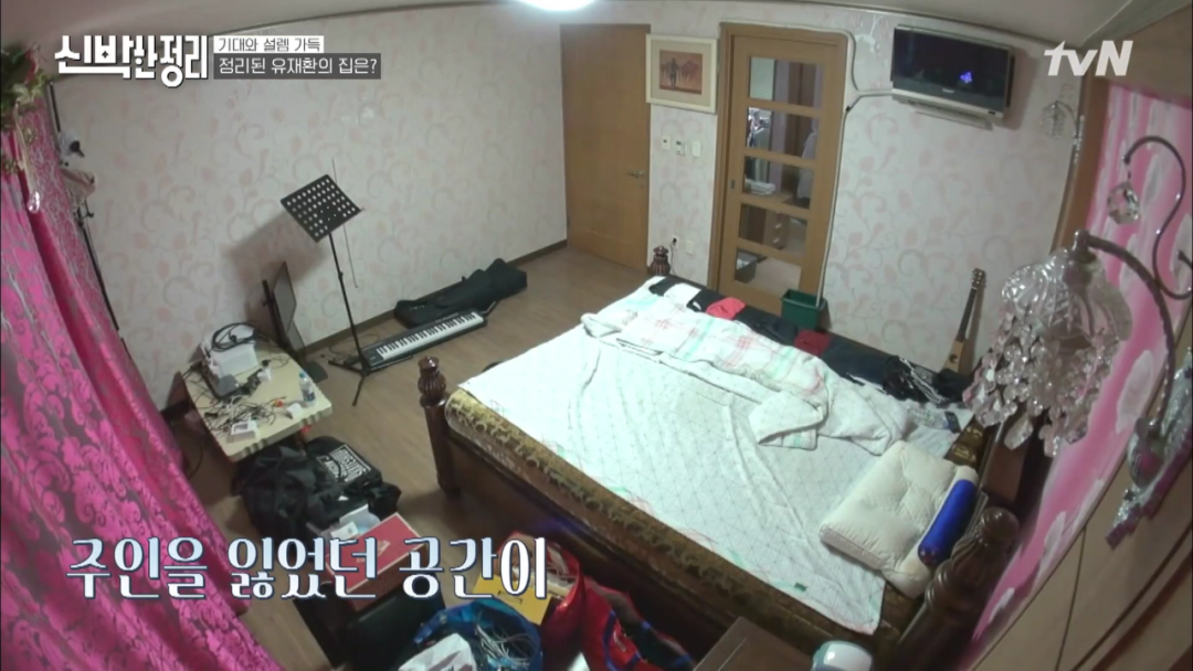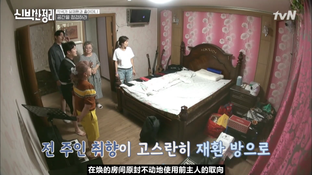 随后节目组便开始参观刘在焕的家,首先是刘在焕的卧室,房间还保留着前主人的装修风格,屋里的摆放着很多杂物。