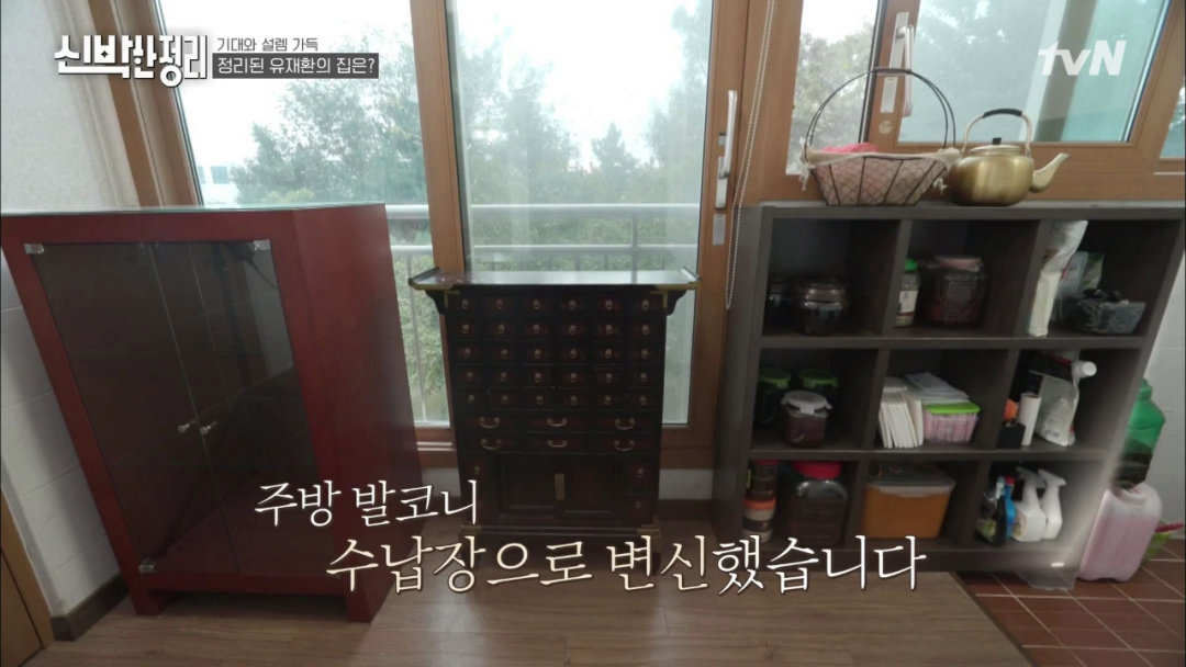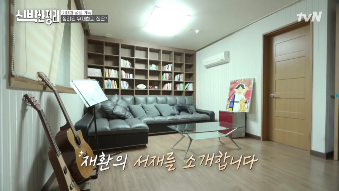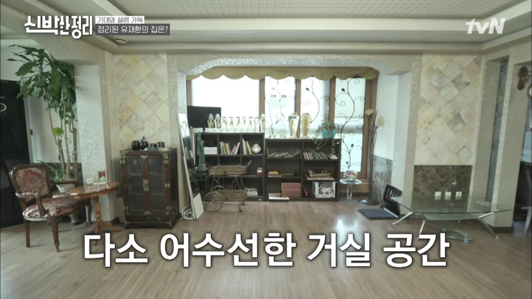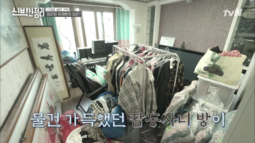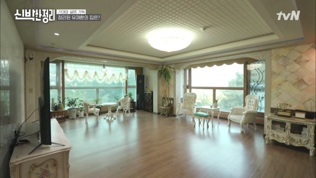 随后节目组便开始参观刘在焕的家,首先是刘在焕的卧室,房间还保留着前主人的装修风格,屋里的摆放着很多杂物。