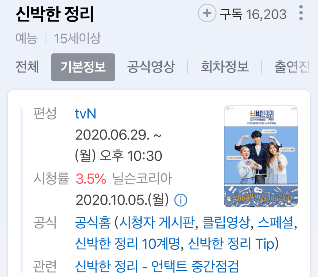 《新颖的整理》是一档节目组去到嘉宾的家中帮助他们整理房间,从而增加空间幸福感的节目,由辛爱罗、朴娜莱、尹均相主持。最近韩国歌手兼作曲家的刘在焕出演了《新颖的整理》第13期,该期节目于10月5日播出。