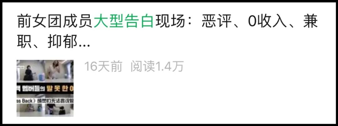此前《Miss Back》预告公开后,她们在节目中吐露的4年没有收入、换上恐慌症和抑郁症、练习生时期过得辛苦等辛酸过往便吸引了大众关注。