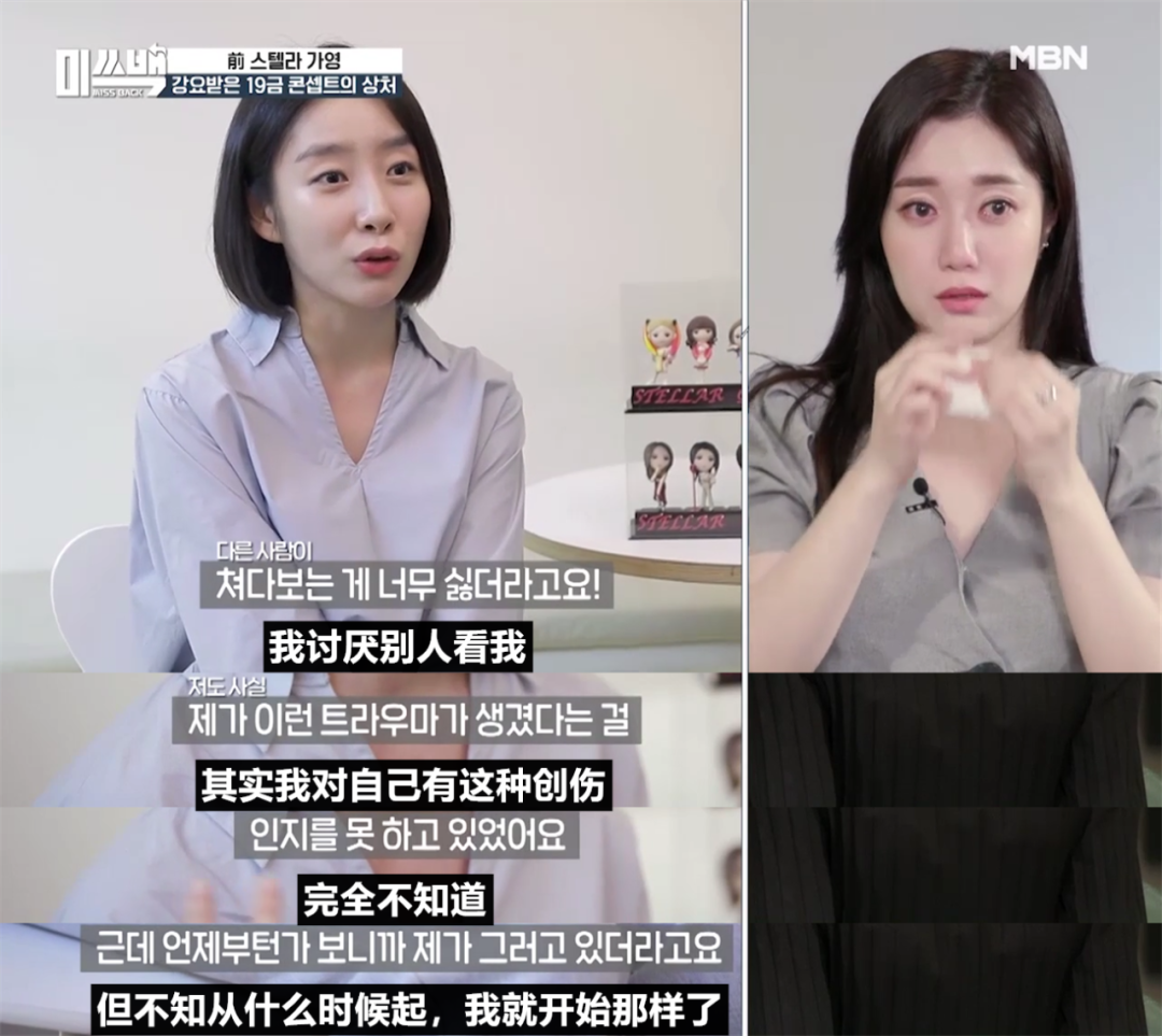 金佳英于2011年以Stellar成员身份出道,2017年合约结束后退出组合。在当天的节目中,久违出演综艺的佳英公开了自己在Stellar活动时期因被迫以19禁性感风格活动而产生创伤的经历。