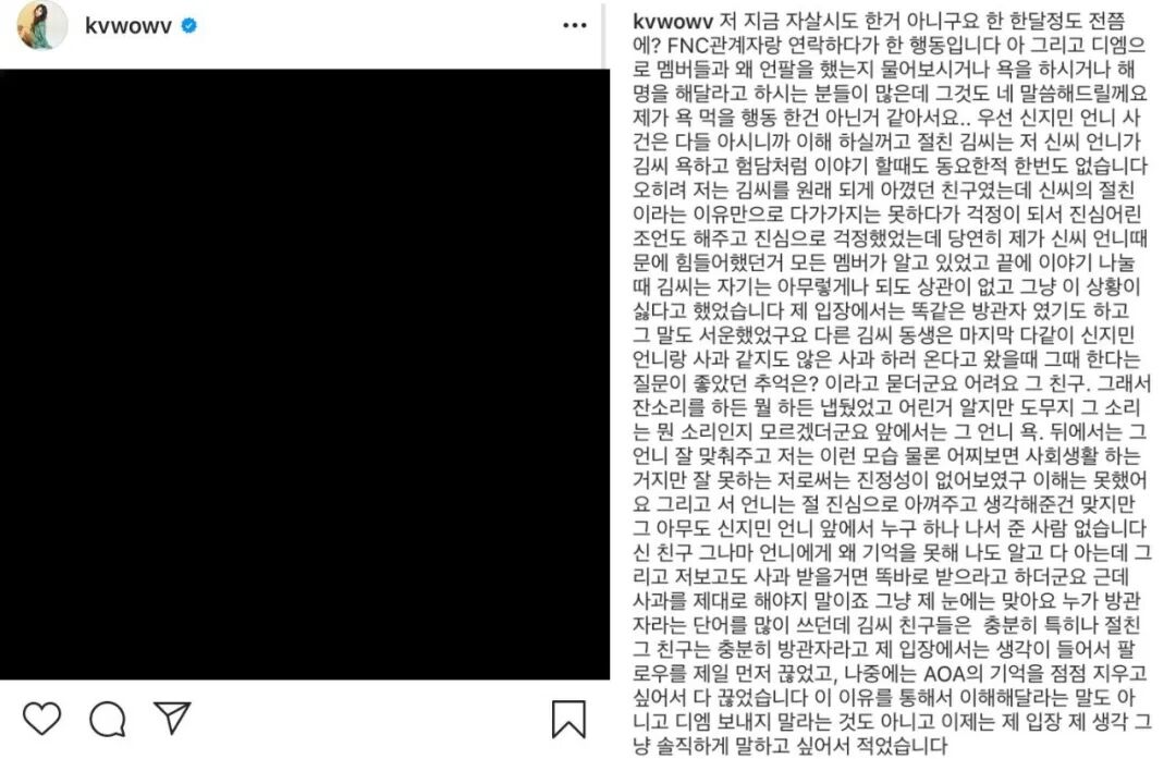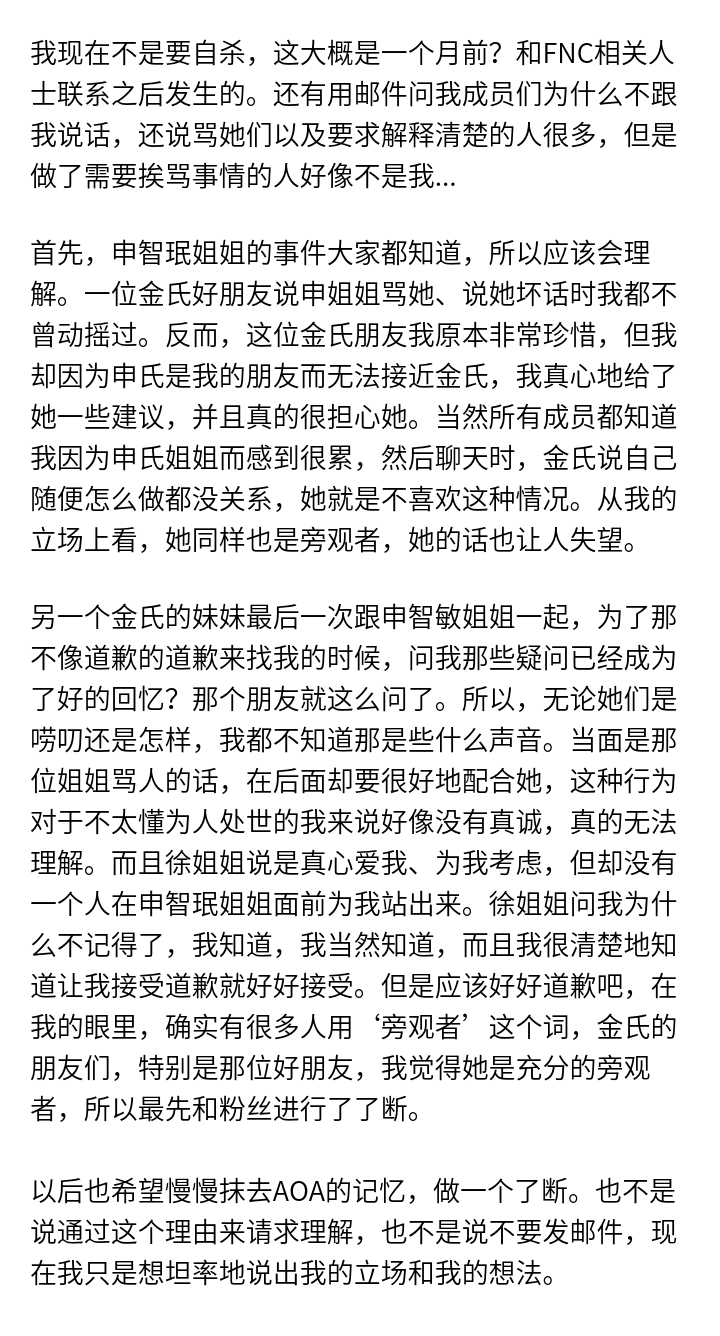 长文发表2小时后,权珉娥第三次发表INS,长文中她吐露了对前所属社FNC的遗憾,表示“FNC,真心道歉真的有那么难吗”。