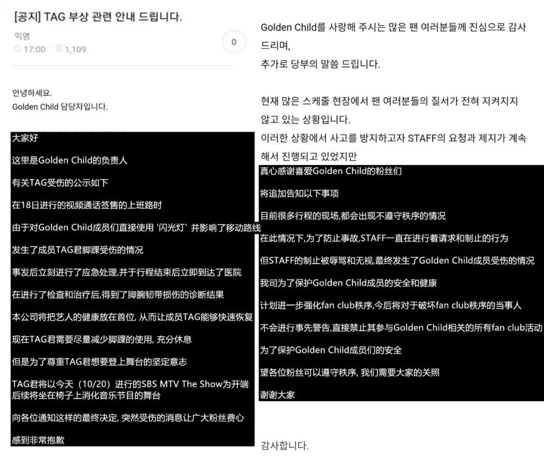 本月20日Golden Child官咖里上传了一篇公告,内容如下:
