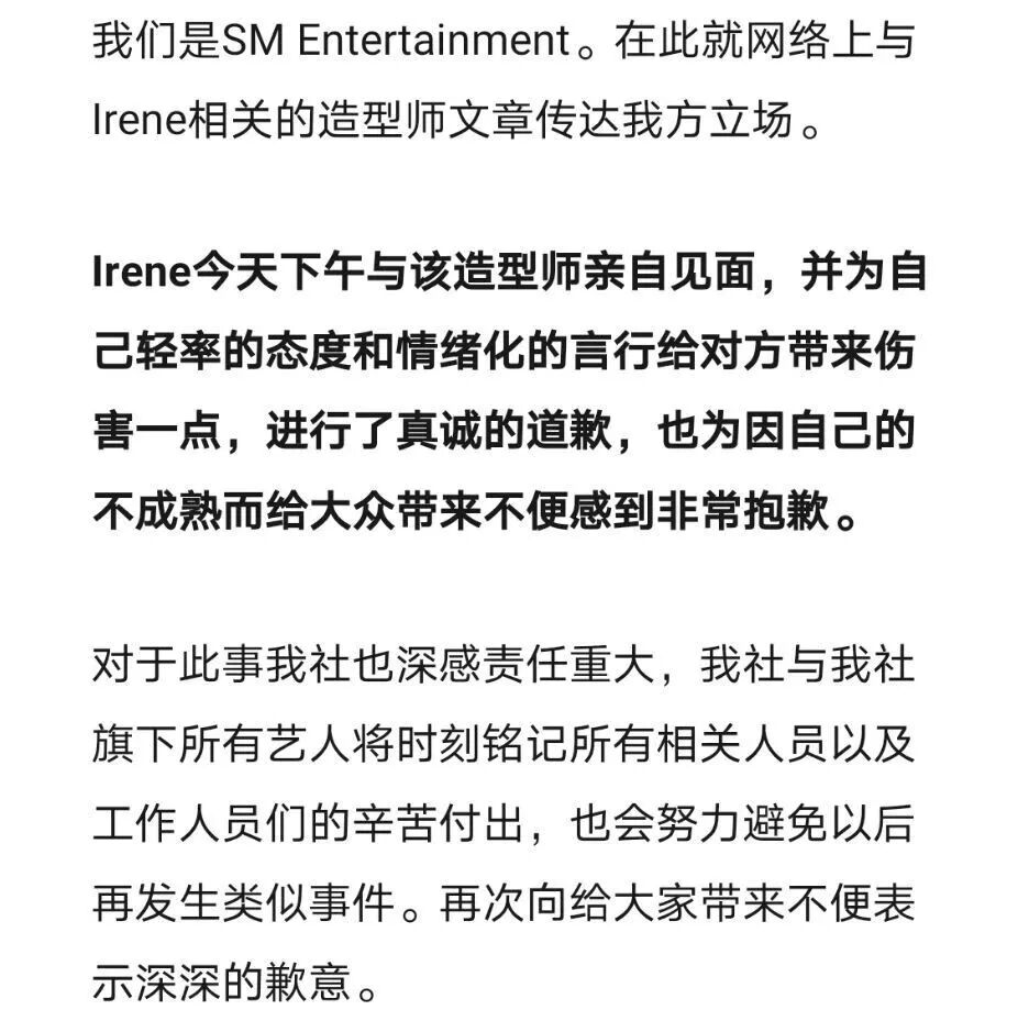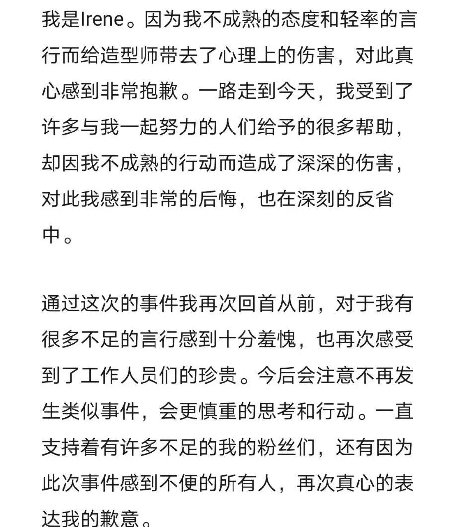 Irene被造型师含恨控诉耍大牌引发品行争议!本人,SM官方相继道歉