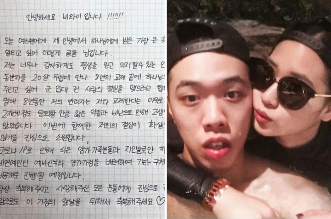 而本月22日这位虔诚的青年向大家传达了自己结婚的消息!当时BewhY通过自己的SNS上传手写信向大家传达了这一好消息,博得了众网友的祝福。
