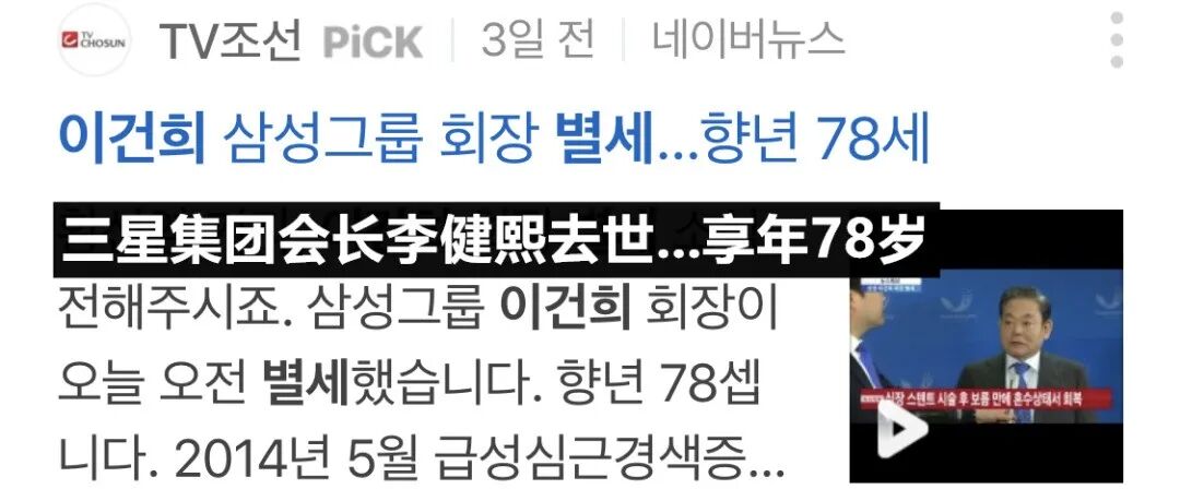 本月25日据多家韩媒报道,韩国三星集团会长李健熙在首尔三星医院去世,享年78岁。李健熙自2014年5月因急性心肌梗塞晕倒后,便开始了长达6年多的住院治疗。