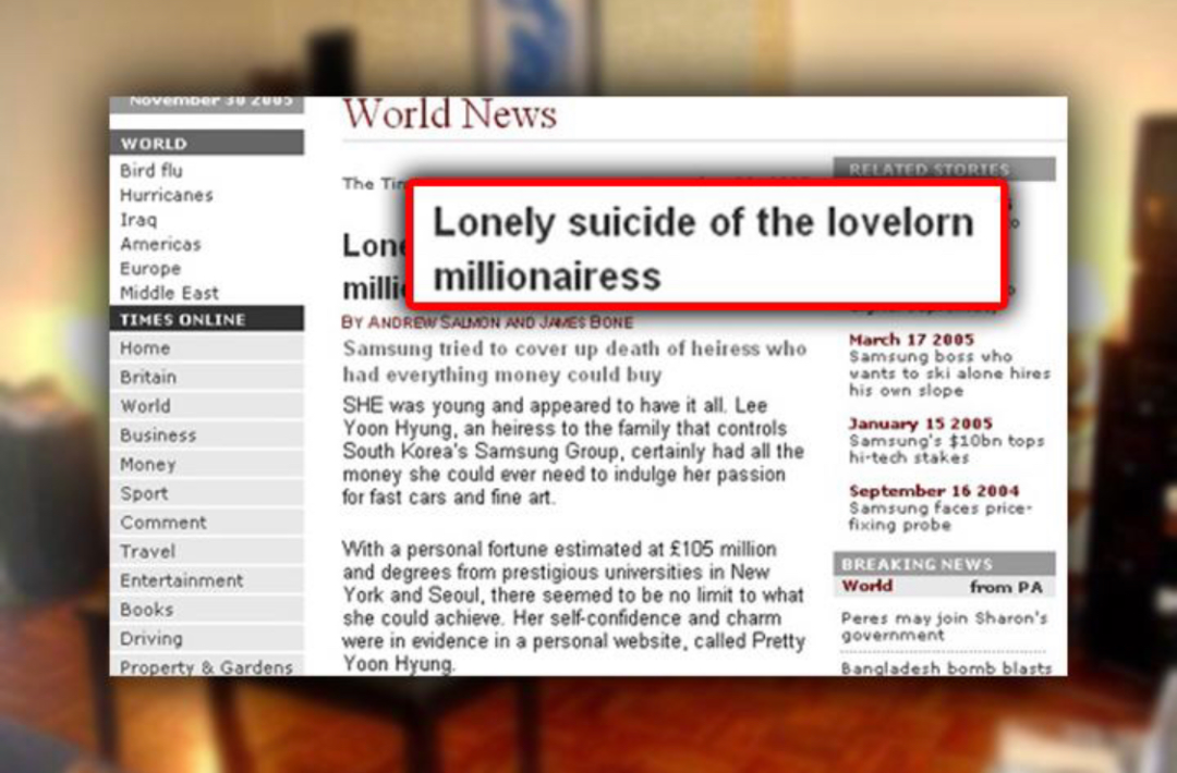 对于还是26岁花季少女的三星家族小女儿的去世,当时网上也传出了许多推测,其中争议最大的就是李尹馨想与正在交往的男朋友结婚,却遭到了父母的反对,所以她感到非常痛苦。也许是在允许了长女李富真自由恋爱结婚后,她却并没有如愿建立非常幸福的家庭,而因此也为小女儿感到担忧。据悉李健熙会长极力反对小女儿李尹馨的恋情。事实上据美国《纽约时报》报道表示第一个发现李尹馨死亡的人声称自己是李尹馨男朋友,而且《泰晤士报》等其他相关报道上也写道“失去爱情的她选择了孤独地自杀”。