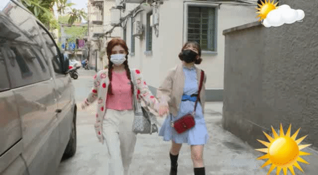 跟闺蜜一起散步,牵起的小手要甩到天上去,也许这就是二次元人物来到现实的样子吧……
