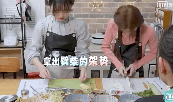 跟闺蜜一起做菜,我感觉她像是第一次拿刀,三个月前她上芒果台易烊千玺他们那档综艺节目,做饭挺熟练的啊。