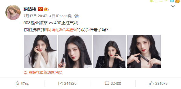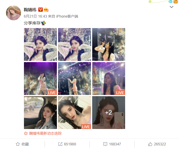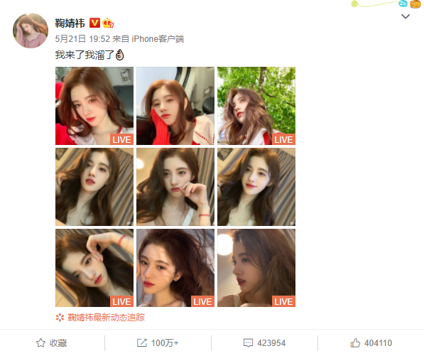 好看是好看的,尤其鞠婧祎五官并不十分惊艳,却融合地整体气质恰到好处。令人没想到的是,从这次开始,鞠婧祎的风格逐渐定性,到哪都是这样。 鞠婧祎出了名的爱营业。微博全是她的自拍。