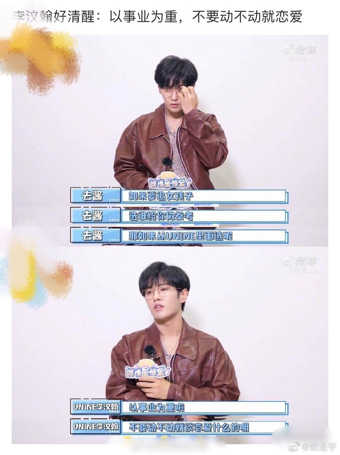 李汶翰还是典型的又当又立,之前接受采访立清醒人设,说自己“以事业为重,不要动不动谈恋爱”。