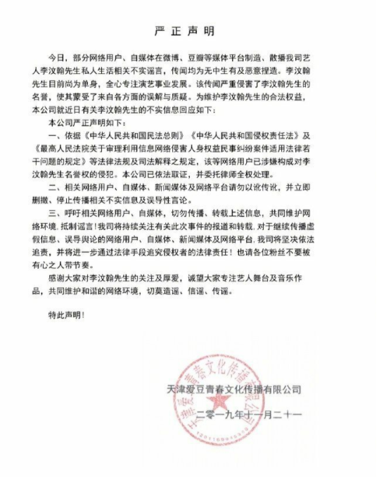 前天,一直沉默的李汶翰出面回应:抱歉让大家担心了,我现在单身。之后会努力拼事业。