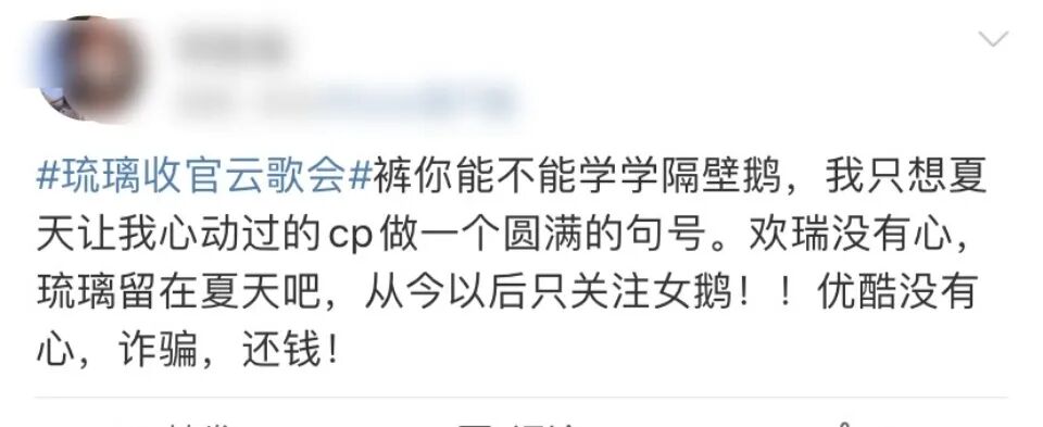 但这场云歌会的气氛异常尴尬,本来应该以一场美好的告别作为结束,但现场强拆cp的行为引起了网友的不满。