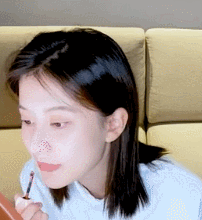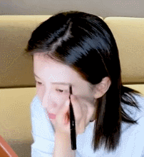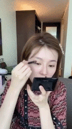 之后就是十分重要的眉毛部分,乔欣选择用双头的眉笔,一边画出眉毛的轮廓感然后填色,另一边用来过度让颜色更加自然。