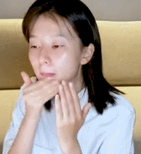 之后用美妆蛋蘸取液体腮红,点涂在苹果肌的位置,用美妆蛋的好处就是不易一下子下手太重,效果会更加自然。