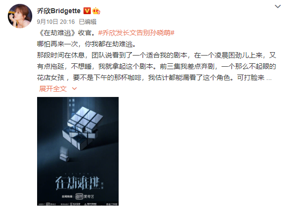 剧集结束后乔欣还发长文与孙晓萌告别,能与王千源、齐溪、吴越这样的实力演员合作,乔欣写道:怕在他们面前笨拙,但努力不会被辜负,与他们相处的日子里学到了很多。