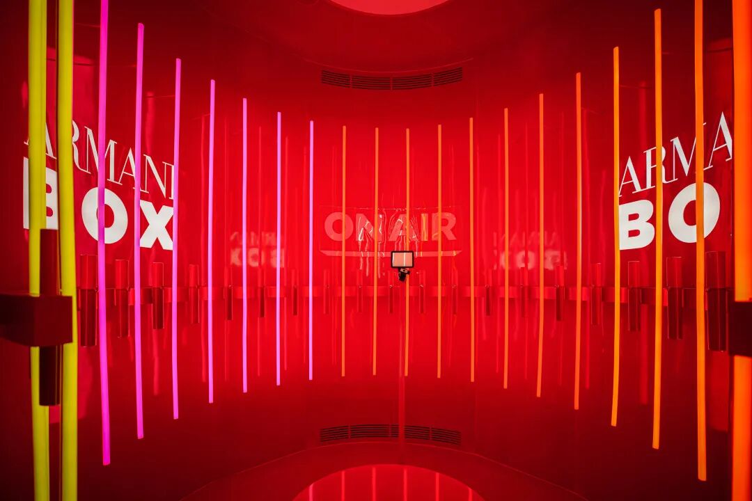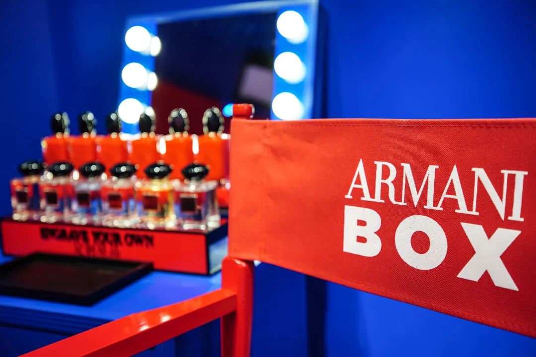 「ArmaniBox」阿玛尼美妆集妆箱集感官冲击与玩味有趣于一身,令人不禁沉浸在阿玛尼的美妆星球中。参观者可尽情体验各类阿玛尼经典美妆产品,「红气垫」、「权力」粉底液和「大师」粉底液、阿玛尼全系的唇妆、阿玛尼迷情挚爱女士香水以及「黑钥匙」护肤系列。
