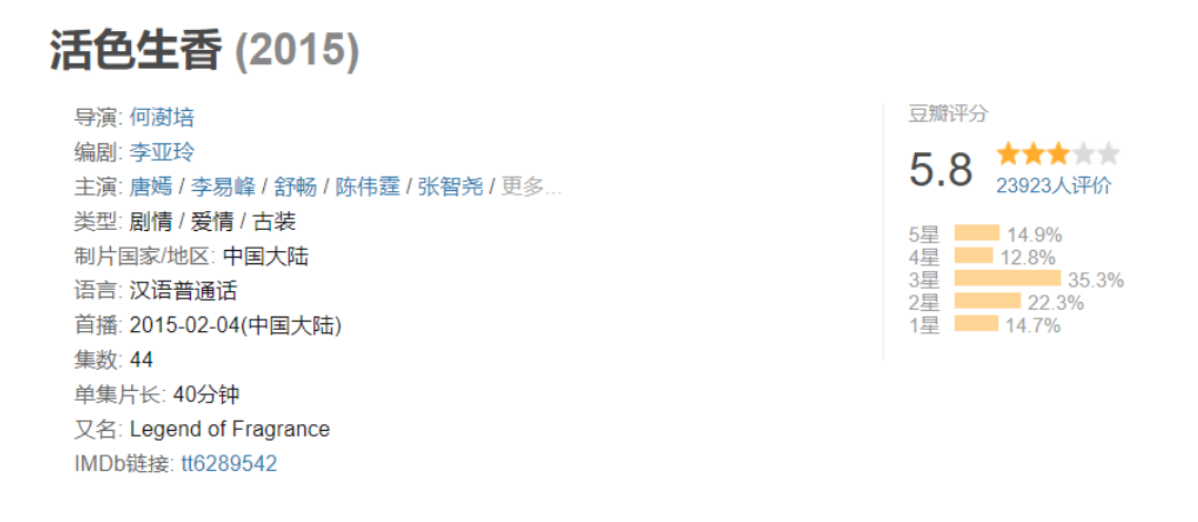 再到唐嫣一届,靠芒果台分外烂的《活色生香》把大热剧《微微一笑很倾城》的郑爽PK掉,已经成为不少观众的意难平。(当时觉得评分那么差还能被提名,现在真是too young了...)
