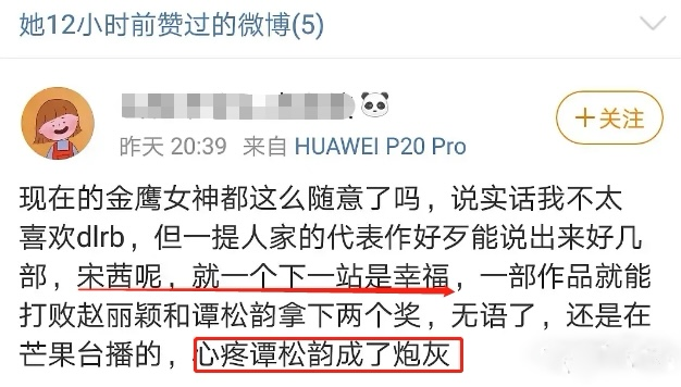 而在投票的关键时间点上,谭松韵经纪人点赞了一条微博,内涵宋茜得不配位、已被内定,疑似坐实了之前的传言。(别问,问就是手滑。)