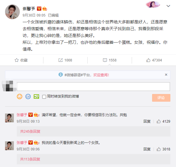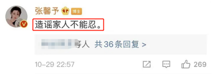 至于原因,张馨予曾在评论区表示,造谣家人不能忍。