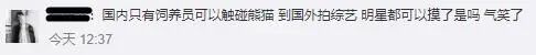要知道,在国内大熊猫是禁止非专业人员接触的,另外不戴手套直接接触大熊猫的行为是违规操作,带妆接触大熊猫可能会让它们染病,更可怕的是家里饲养宠物的人身上有可能携带犬瘟热病毒,而犬瘟热病毒对大熊猫的危害是致命的。